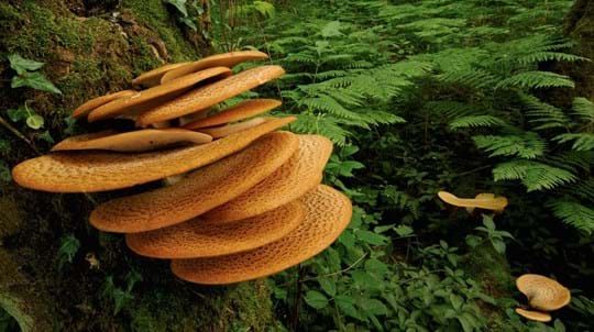 Magical and mistrusted. Toadstools and mushrooms are associated with ancient taboos, dung, death and decomposition. But trees and many other species rely on fungi and we're just starting to understand how close this relationship is: great woodland networks that link and support life. They come in dazzling shapes, colours and sizes; even working with other species to produce different organisms.