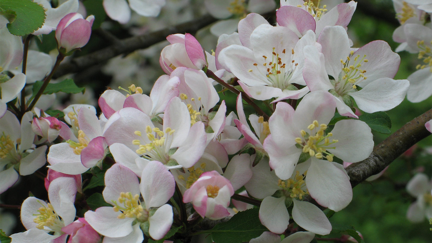 Crab apple flowers can range from pure white to deep pink and their apples can be red or yellow.