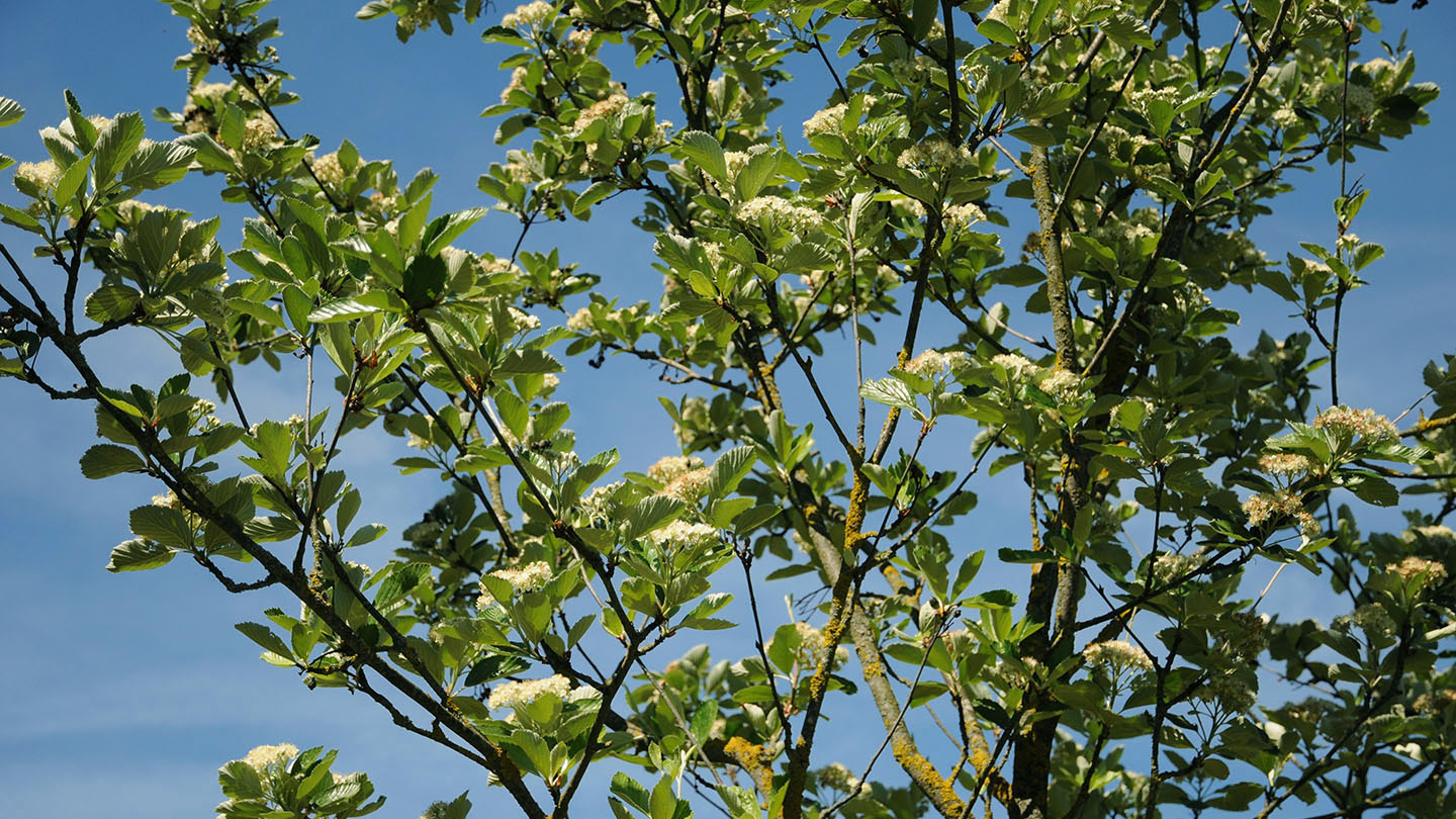 Elongated oval, 8–15cm long, mid-green and undivided, with the upper half sharply toothed (with teeth often curved forward) but un-toothed towards the base. The top side of the leaf is mid-green and the underside is densely white-felted with 6 to 11 veins. The leaves are around one- and-a-half to two-and-a-half times longer than wide and are mostly widest furthest from the stalk.