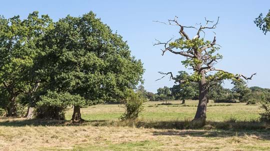Invertebrates from beetles and butterflies to moths and ants bring more life to the tree and create a rich food supply for birds and bats. Larvae of goat moth (Cossus cossus), the heaviest moth in the UK, burrow into the trunk of oaks to hatch beneath the bark and feed on the wood until they emerge. Also beneath the bark is the cobweb beetle (Ctesias serra), named because it steals its food from spider webs, and the brown tree ant (Lasius brunneus) which almost exclusively nests in old oak trees.