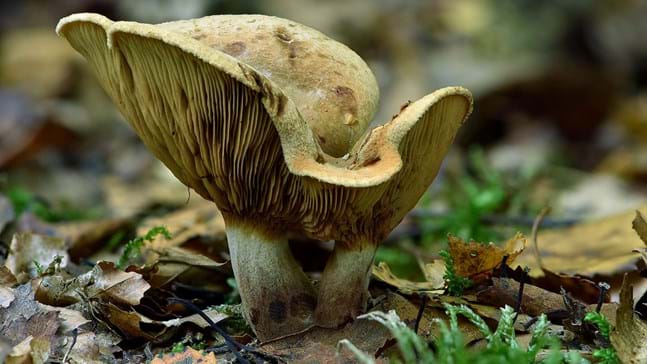Common and deadly poisonous, brown roll-rim fungus can look similar to edible field mushrooms but is brownish-yellow and has a rim that rolls under to protect the gills – hence its name.